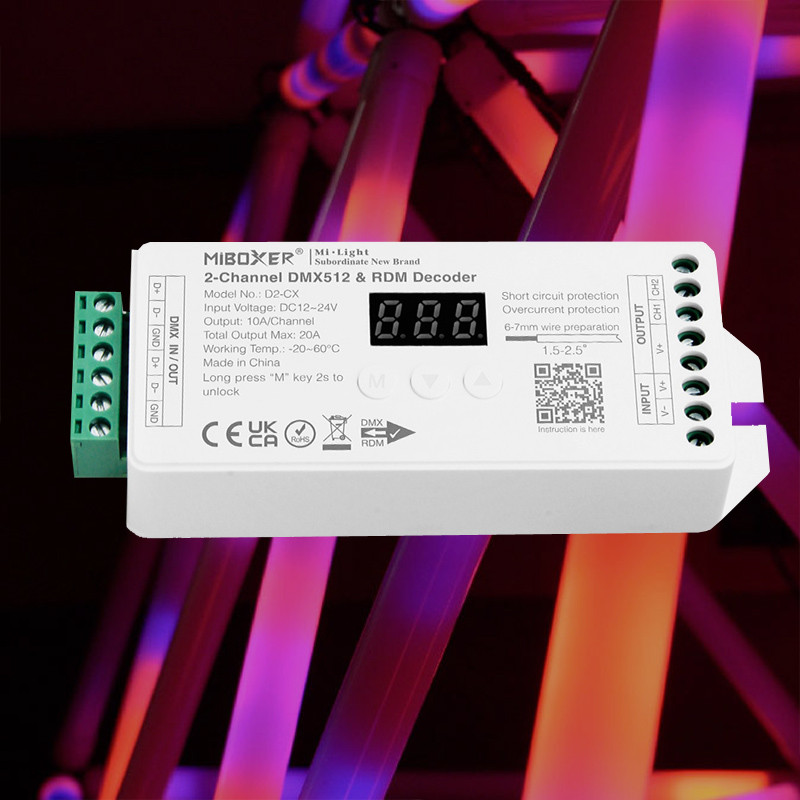 Diese Art von Banner erfordert die Ansteuerung eines variablen weißen Controllers. Es ermöglicht Ihnen, die Lichtintensität sowie den Weißton ein- und auszuschalten und zu variieren.