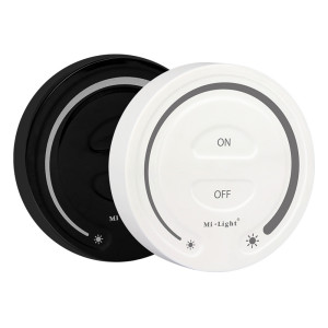 Dimmer led de pared inalámbrico. Forma redonda. Se comunica con controladores inalámbricos de 2,4 GHz.